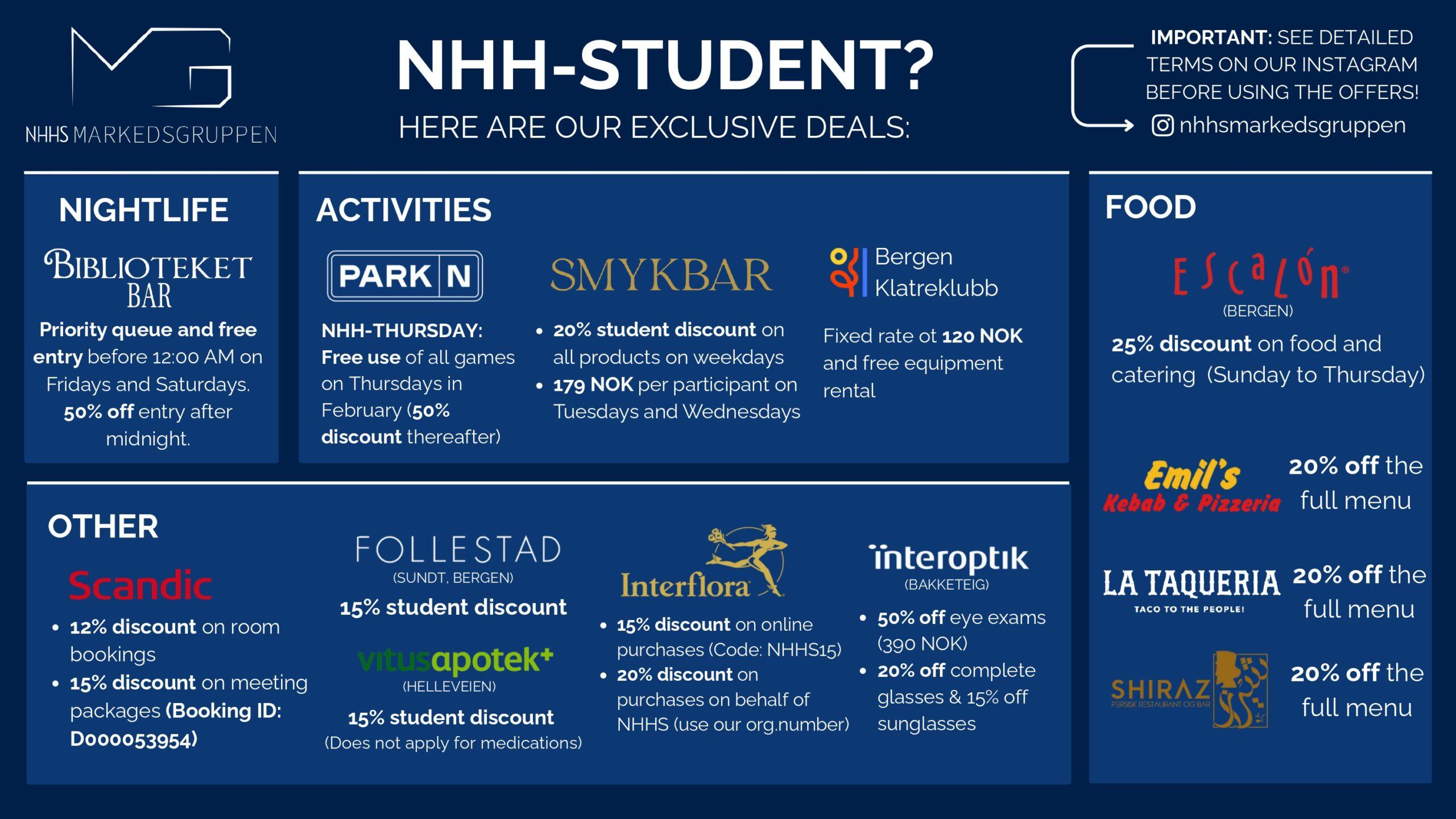 Additionally all NHH students get 25% of the whole menu at: